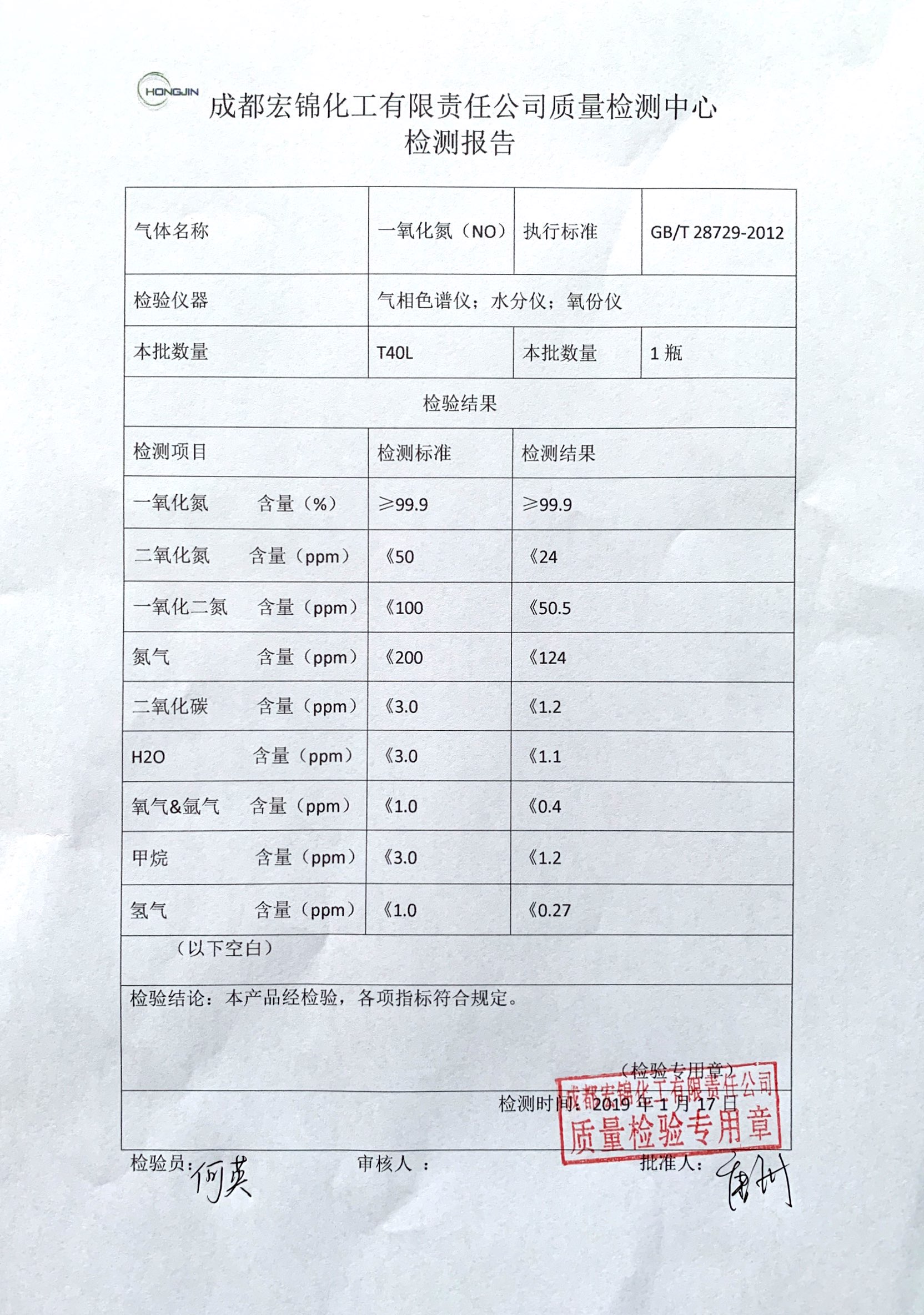 一氧化氮质量检测报告