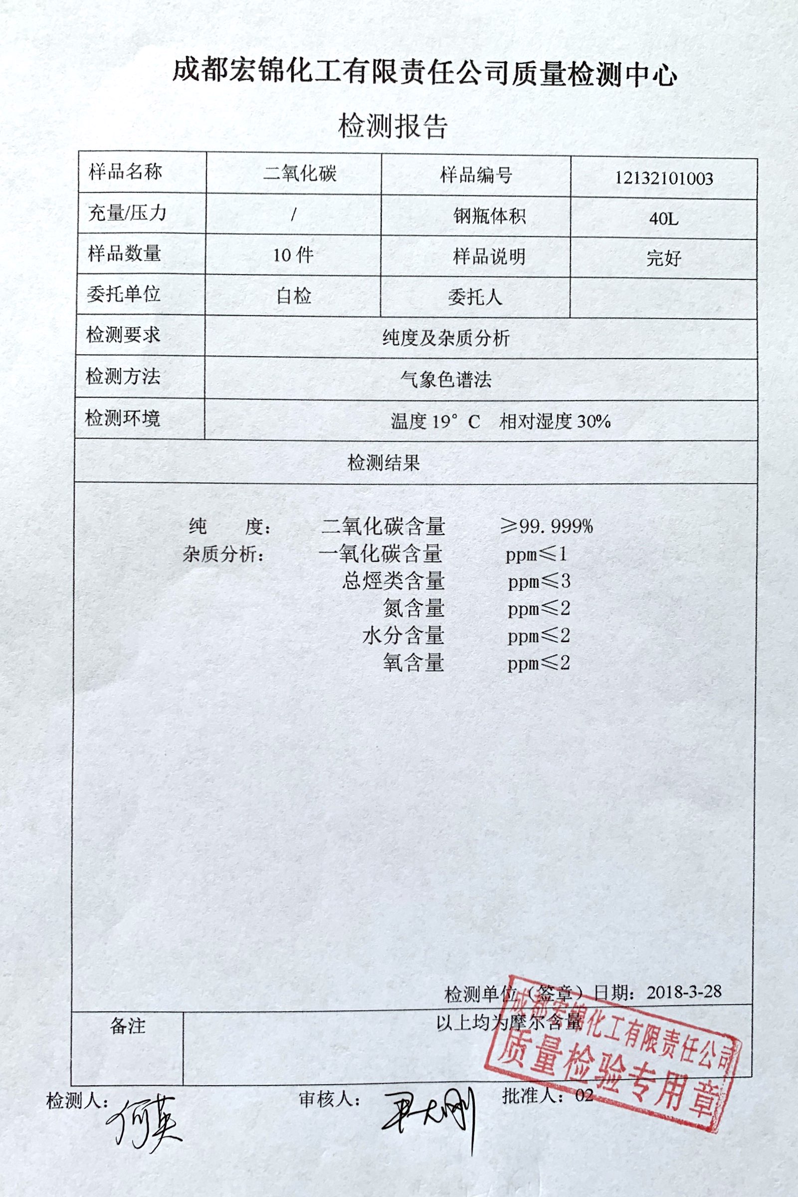 高纯二氧化碳质量检测报告