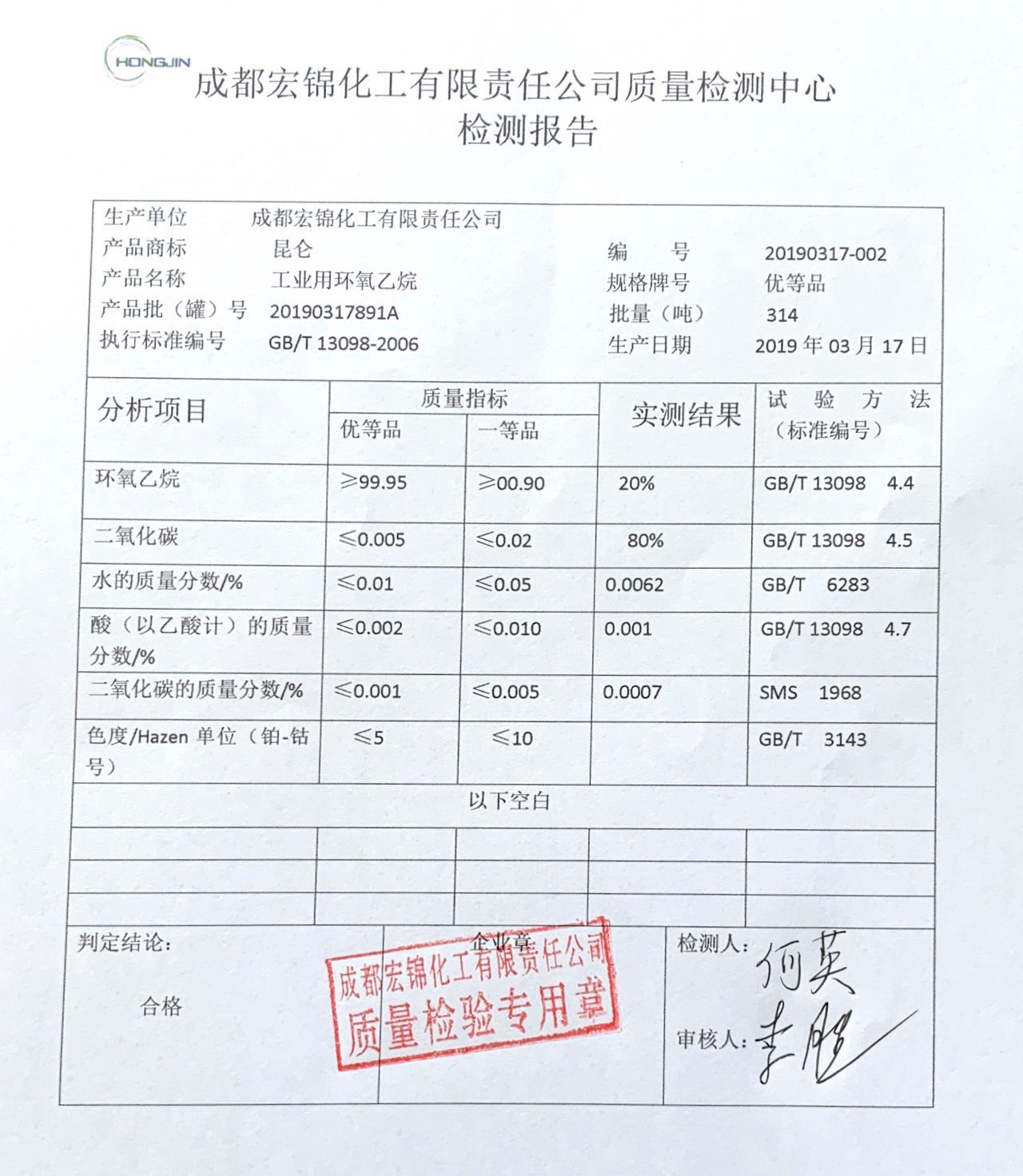 我公司配有高精检测设备,确保环氧乙烷的质量。