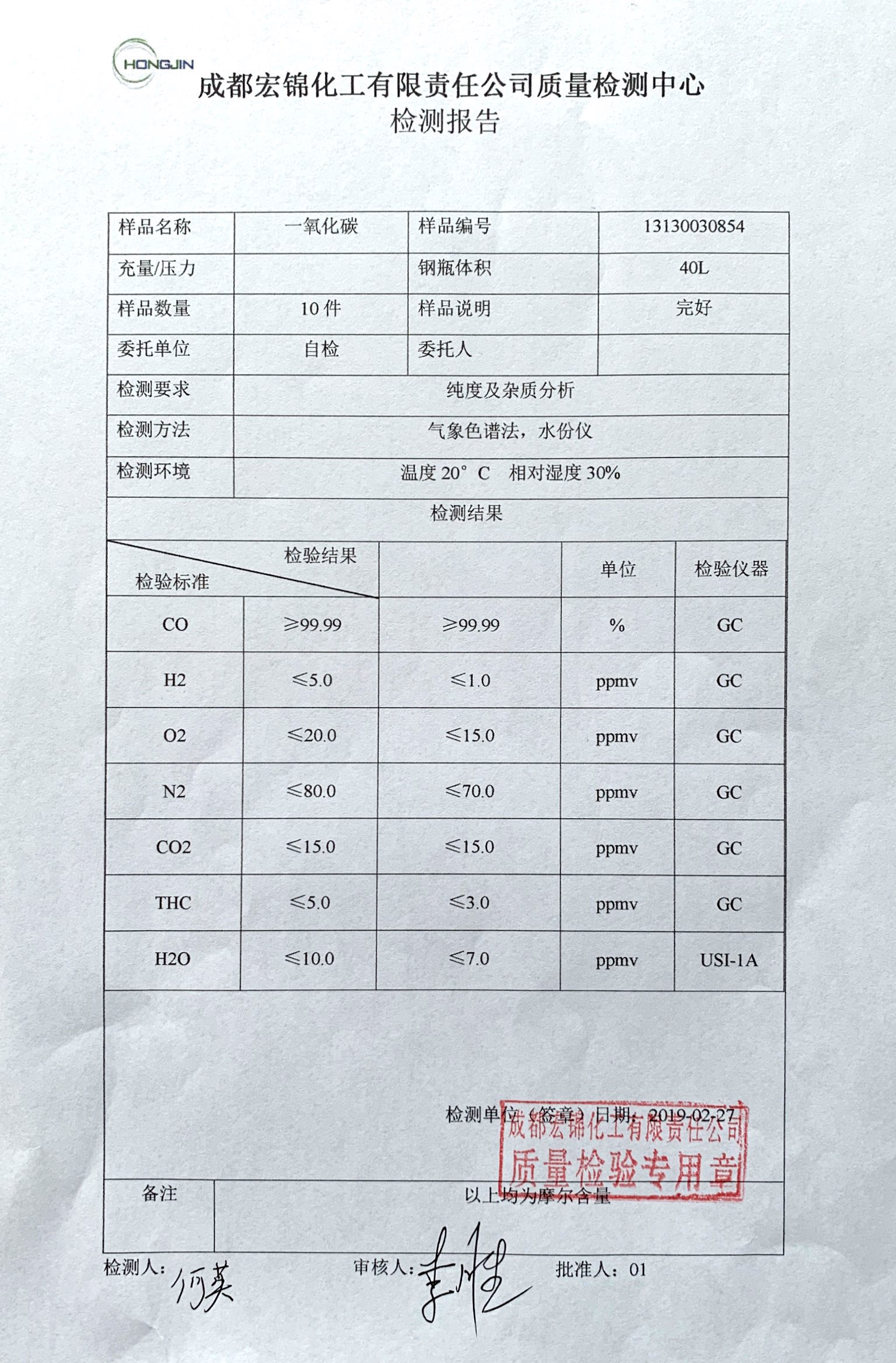 一氧化碳质量检测报告